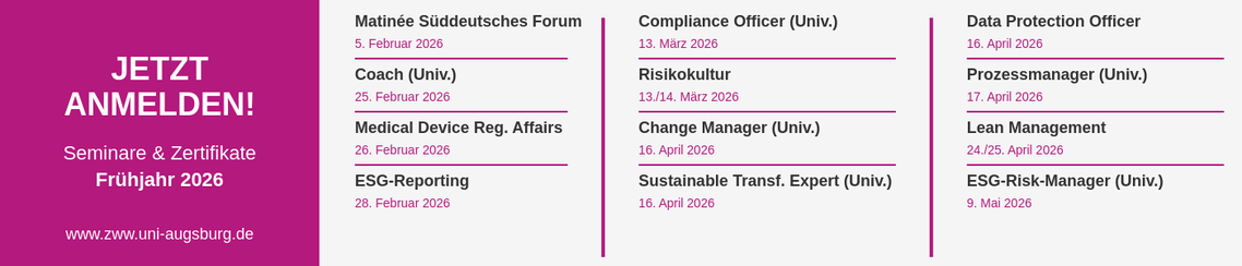 Highlights im Frühjahr 2026 am ZWW der Universität Augsburg